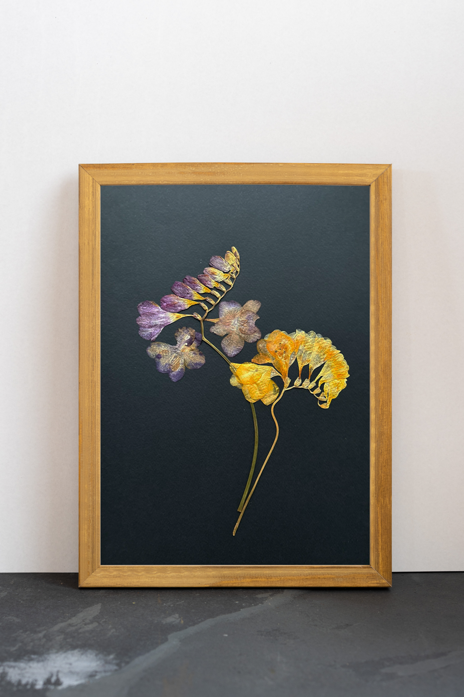 Cuadros botánicos de flores prensadas 100% naturales. Para preservar mejor su color, recomendamos no exponerlos a la luz del sol y evitar ambientes con humedad.